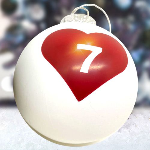 Recevez une boule de Noël avec un 7 de coeur imprimé !