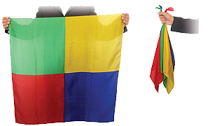 Quatre foulards de 18" deviennent soudainement un grand foulard de 36", entre les mains du magicien !