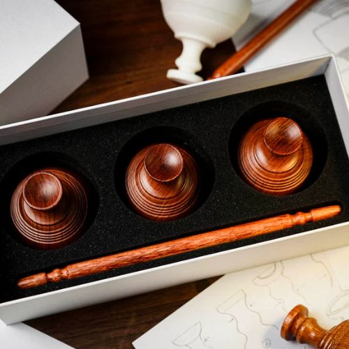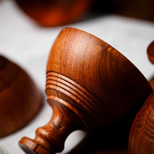 Fabriqués principalement en bois de rose africain, les gobelets et la baguette ont une texture pure et authentique. Notre sélection méticuleuse des matériaux garantit une manipulation confortable. Le design soigné complète parfaitement l'attrait visuel général, et la finition mate accentue les lignes élégantes des tasses, garantissant durabilité et valeur.
