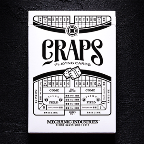 Comme Roulette Playing Cards, le premier jeu de l'édition Mechanic Casino, les cartes sont personnalisées avec des motifs de Craps, tels que les dés, le râteau et l'argent. Illustrés pour se fondre dans les illustrations classiques, ils complètent vraiment le look du jeu tout en étant immédiatement reconnaissables pour une utilisation dans vos routines magiques.