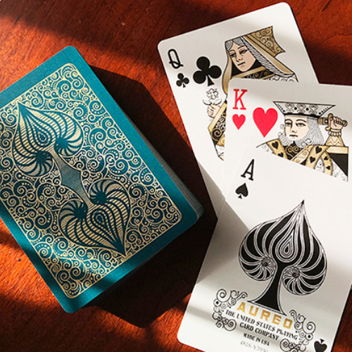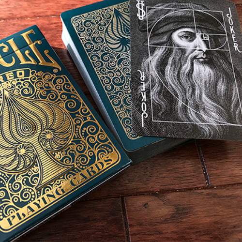 DaVinci a appelé plus tard cette section aurea ou la section dorée. La feuille d'or et les motifs tourbillonnants donnent vie au nombre d'or dans ce jeu de cartes unique !
