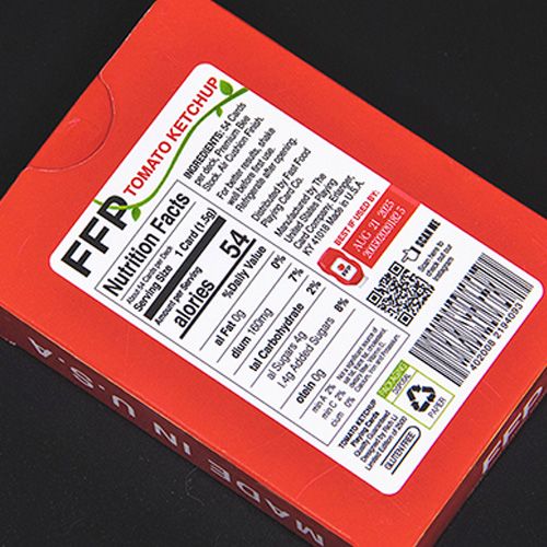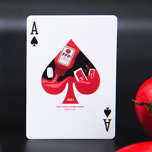 Les cartes à jouer Ketchup et Frites sont une brillante combinaison de Fast Food et de cartes à jouer par le talentueux Rich Li. L'étui des cartes à jouer Frites est découpé à l'emporte-pièce pour ressembler et servir d'emballage réel à un paquet de frites. Le design lui-même est considéré comme convenant à la fois aux magiciens et aux joueurs de cartes, de sorte que l'on ne soit pas distrait par l'œuvre d'art, mais que l'on puisse toujours trouver l'aspect ludique représentant la culture du fast-food. Qui sait ? Vous pourriez trouver des visages familiers sur les délicieuses figures.