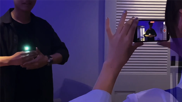 Vous demandez à emprunter le téléphone d'un spectateur. Vous allumez le flash et le tenez bien en évidence dans vos mains. Vous leur donnez votre téléphone afin qu'ils puissent filmer ce qui va se passer. Vous tenez son téléphone, il filme ce qui se passe sur votre téléphone. En un clin d'œil, son téléphone disparaît de vos mains. Où peut-il bien être ? Il est désormais entre SES mains et IL a filmé toute la scène sur SON PROPRE TÉLÉPHONE !