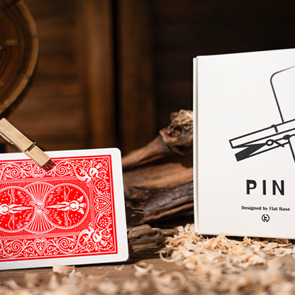 Flat Base présente PIN, un tout nouveau système de capture de cartes qui fait passer votre démonstration d'habileté au niveau supérieur. Au lieu d'utiliser vos mains, vous utiliserez une pince à linge, ce qui rendra l'effet encore plus impossible et étonnant.