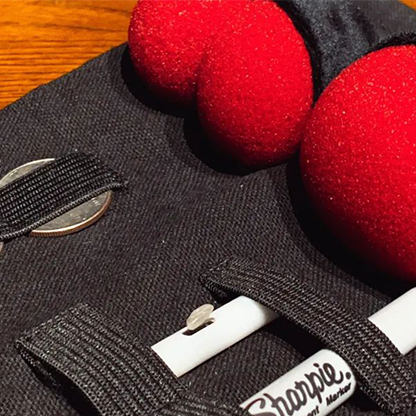 Lorsque vous ne vous produisez pas, vous pouvez le plier à l'aide des aimants intégrés et l'utiliser comme un petit sac facile à transporter pour tout ranger, des cartes aux pièces de monnaie en passant par les balles en éponge.