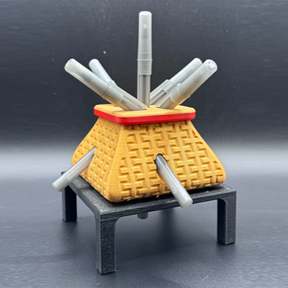 Nous avons maintenant réduit cette illusion de scène en un porte-stylo de bureau. En effet, là où les épées pénètrent normalement dans le panier, celui-ci contient maintenant 5 stylos de votre choix !