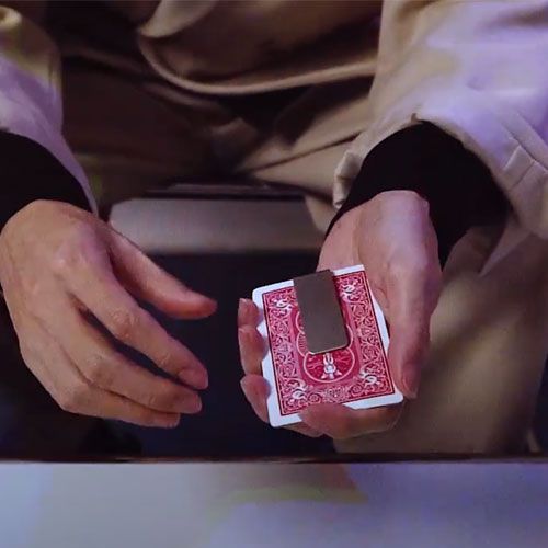 The Clip est une pince en métal, qui va traverser, voyager, apparaître, disparaître autour de vos cartes à jouer, billets ou cartes de visite.