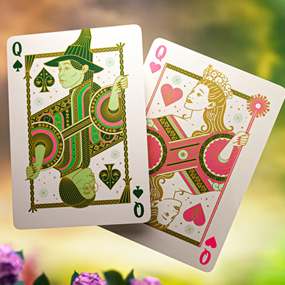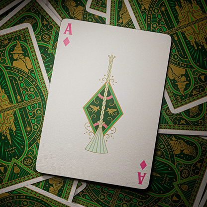 Découvrez ce jeu de cartes indispensable pour les fans de l'histoire inédite des sorcières d'Oz ! Ce jeu est orné d'une combinaison royale de feuilles vertes et dorées.